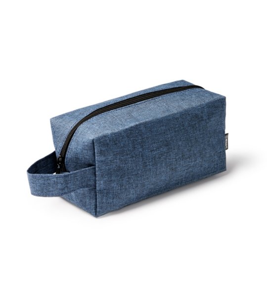 Несесер за тоалетни принадлежности, изработен от 600D RPET с цип и практична дръжка за носене.