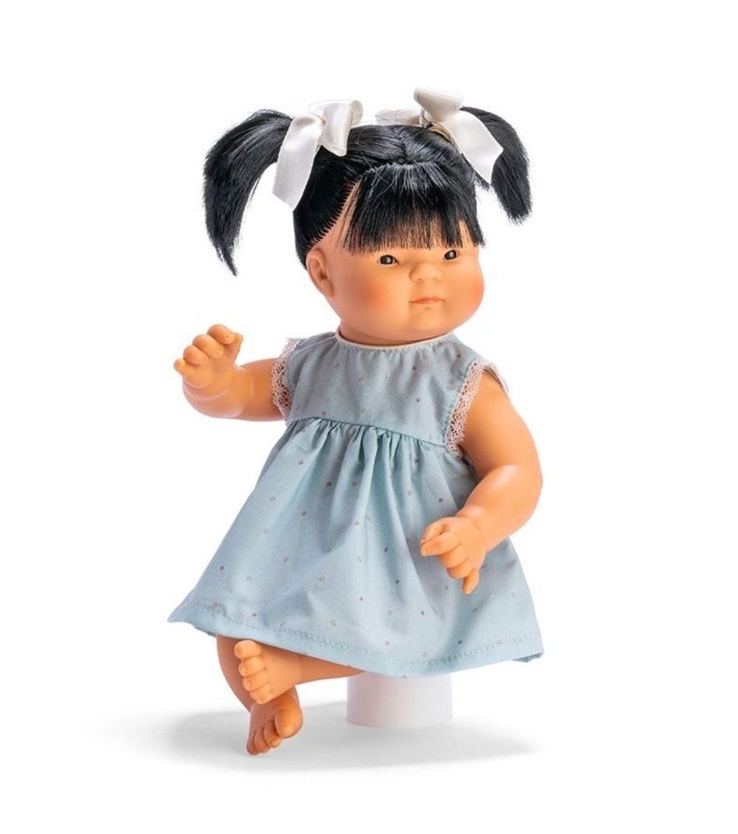 Запознайте се с куклата Чени на испанската марка Asi – с височина 36 см, облечена със синя рокля на звездички. Тази специална версия съчетава добре познатата сладост на Чени с още повече стил и чар. Изработена от изцяло гумено тяло, Чени е мека, безопасна и устойчива, идеална за детски игри. Косата й е черна, мека и копринена, а подвижните крайници я правят лесна за обличане и позициониране.Куклата е съвместима с цялата колекция дрехи на Asi за размера, което позволява безкрайни комбинации и ролеви игри.