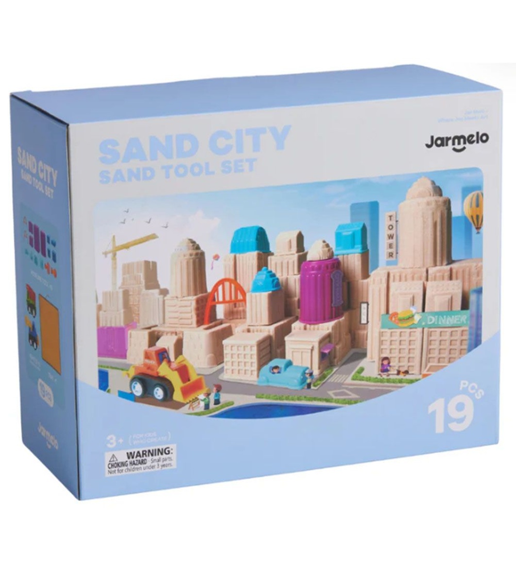 Комплектът е съвместим с кинетичен пясък (пясъкът се предлага отделно) и е подходящ за деца над 3 години.