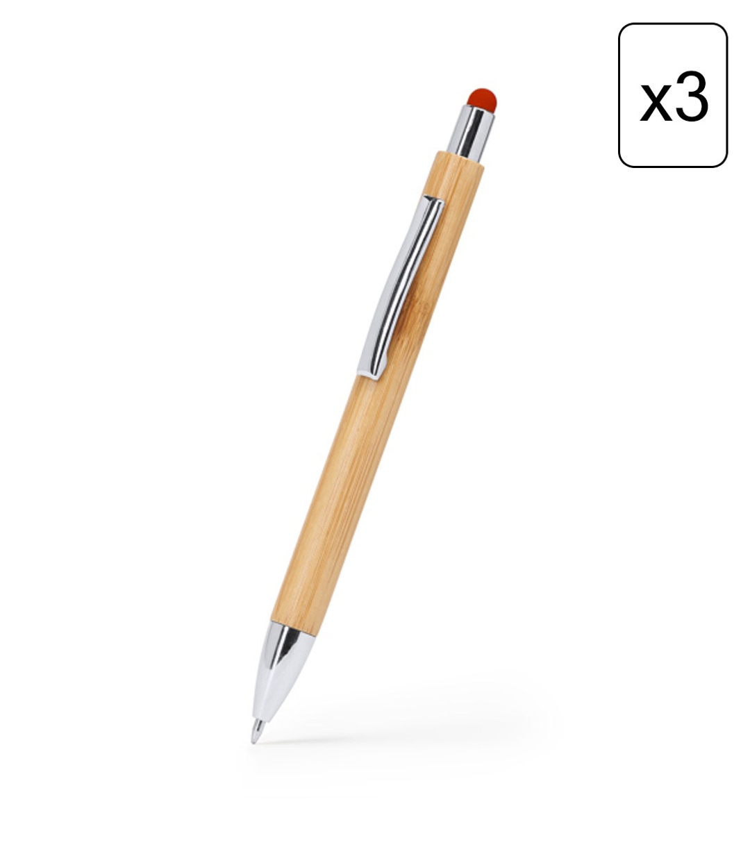 Комплект от 3 бамбукови химикалки с червен детайл FERN