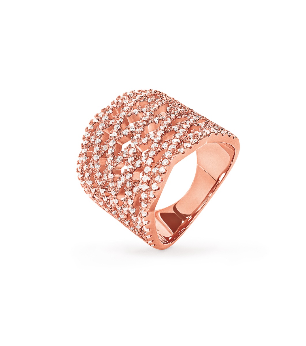 Елегантен дамски пръстен с блестящи декоративни елементи.
